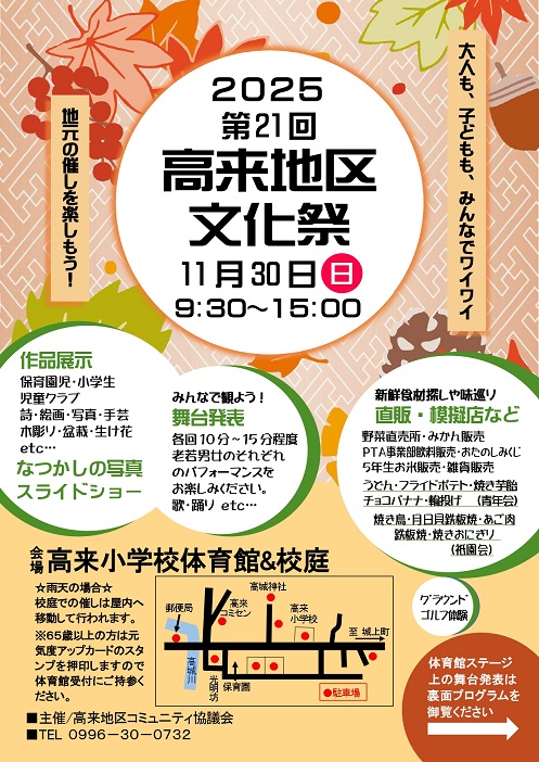 【連絡先】 高来地区コミュニティ協議会 TEL 0996-30-0732