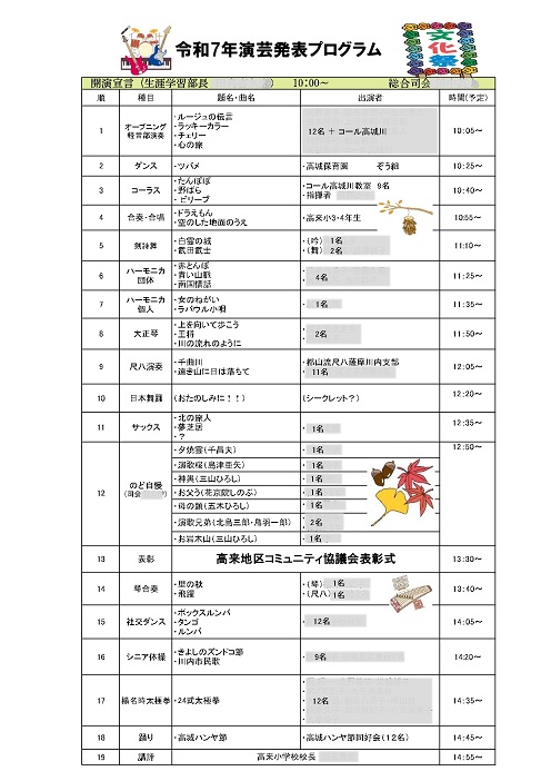 21回目を迎える高来地区文化祭を11月30日(日)に開催します。